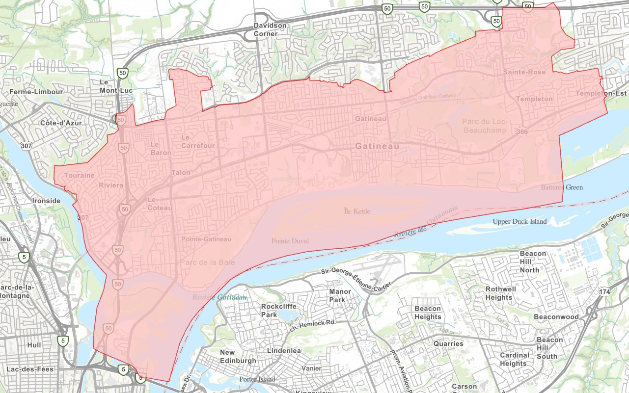 Reconnue pour sa qualité de vie, Gatineau est une ville de 298 000 habitants. Elle est située sur la rive nord de la rivière des Outaouais, et s'étend à l'est et à l'ouest de la rivière Gatineau.