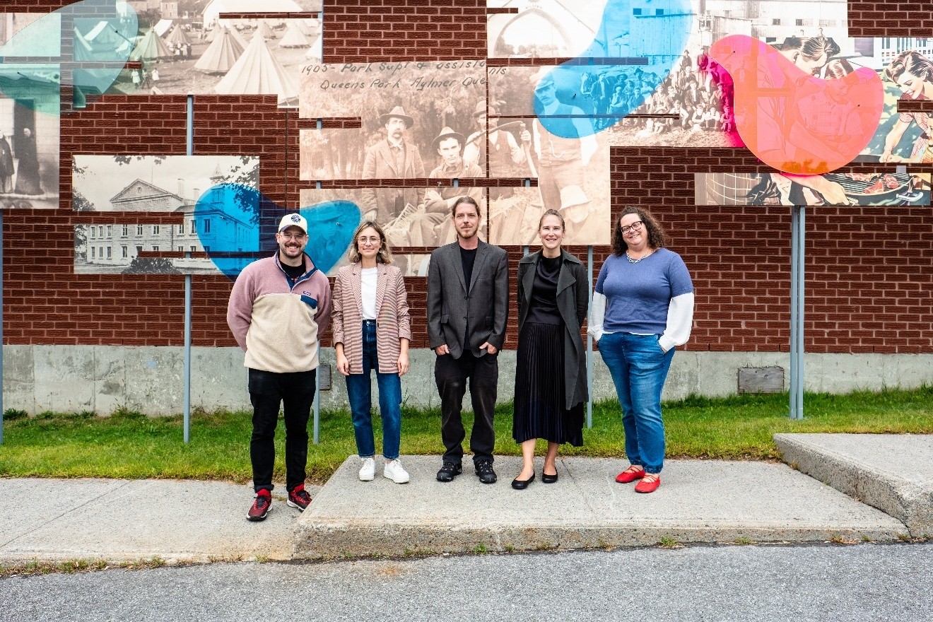 De gauche à droite : M. Steven Boivin, conseiller municipal du district d'Aylmer et vice-président de la Commission des arts, de la culture, des lettres et du patrimoine, Mme Léa Alain-Gendreau, responsable - Arts visuels et patrimoine, M. Jérôme Bertrand, artiste, Mme Julie Lacroix, cheffe de service - Animation et diffusion culturelle, Mme Isabelle N. Miron, présidente de la Commission des arts, de la culture, des lettres et du patrimoine de la Ville de Gatineau.